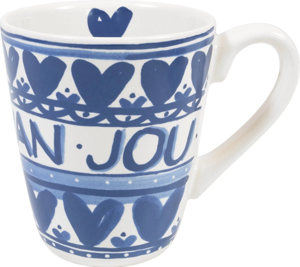 Liefde kun je 365 dagen per jaar vieren maar op 14 Februari nog net een beetje extra: Valentijnsdag. Een mooie gelegenheid om je (stille) liefde te laten weten dat jullie voor altijd bij elkaar horen. Is jouw geliefde fan van Delfts Blond? Dan hebben wij goed nieuws. Speciaal voor Valentijnsdag is er een speciale Delfts Blond beker gemaakt. De illustraties zijn geïnspireerd op het traditionele Delfts blauw en op de beker staat de tekst: Ik hou van jou! Verras je geliefde met deze beker en maak er een fijne Valentijnsdag van!