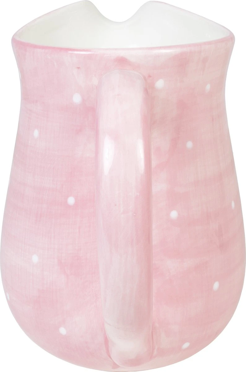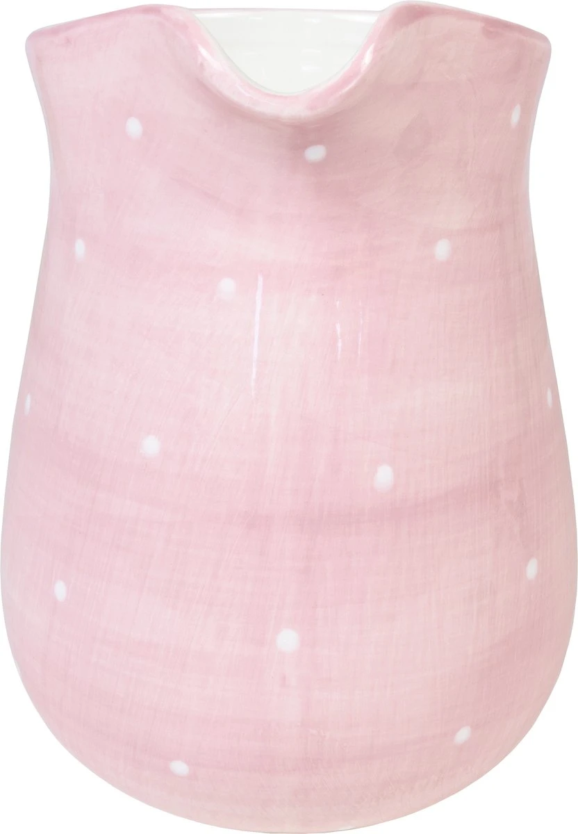 De collectie Even Bijkletsen is nog steeds de grote favoriet van vele Blond-Amsterdam-liefhebbers en wordt steeds weer uitgebreid. Deze keer niet met de kenmerkende illustraties, maar met een roze met witte stippen print. De nieuwe sapkan is extra groot (inhoud 2,5 liter), perfect voor jouw favoriete cocktail, verse sap of vul de kan met gekoeld water. Ideaal om te gebruiken bij een barbecue. Of koop een fleurig boeket en gebruik de kan als vaas!