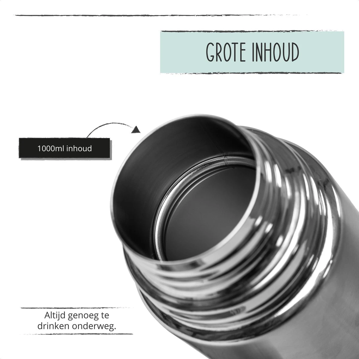 draagbaar ontwerp, dubbelwandige isolatie en een ruime inhoud van 1 liter. Het