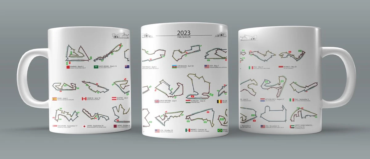 Mis geen enkele wedstrijd meer met deze unieke Formule 1 kalender mok!
