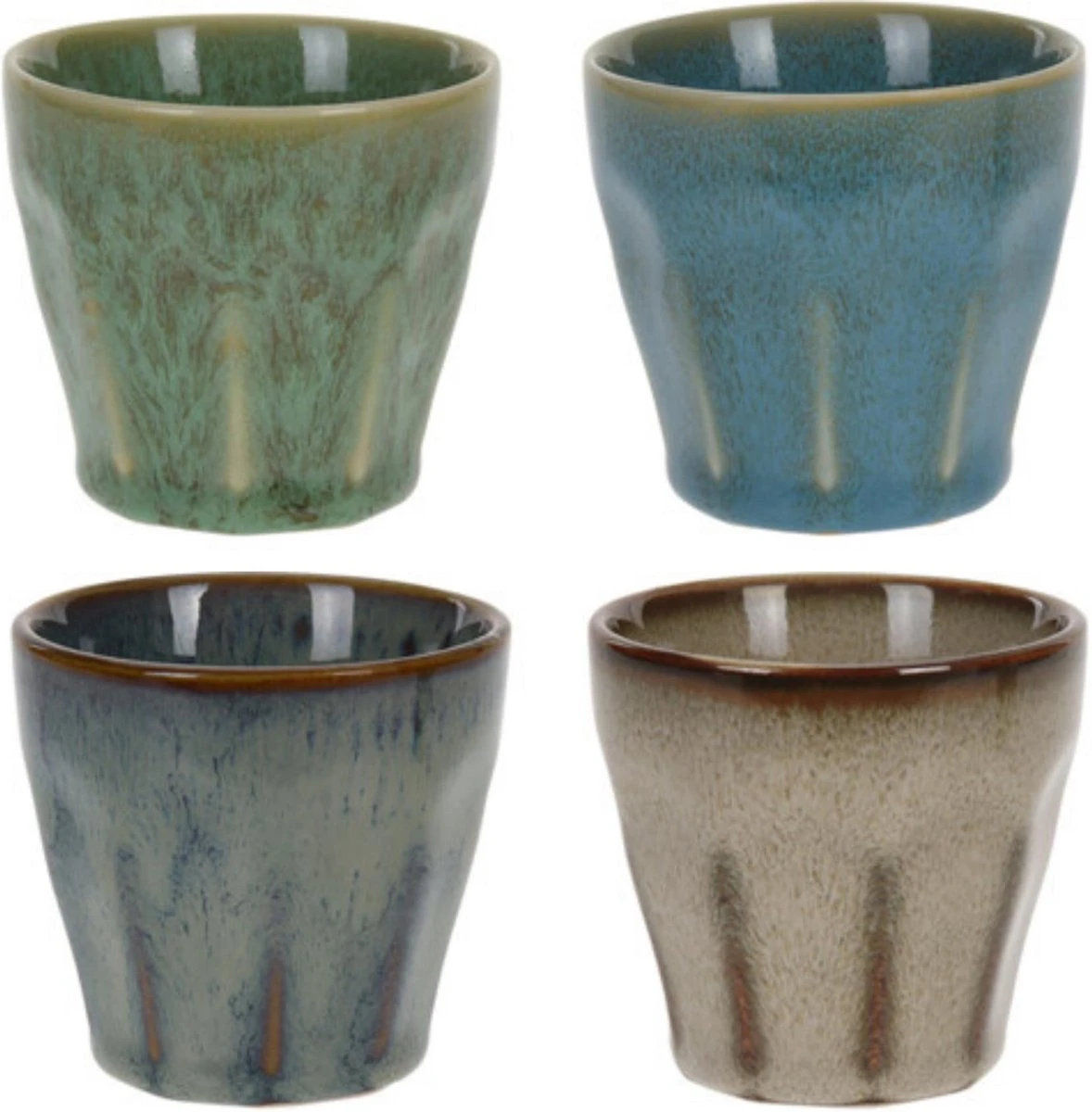 Deze espressokopjes van Orange85 komen in een set van 4. De espressokopjes zijn gemaakt van porselein. De kopjes hebben elk een andere blauwe of grijze kleur. De inhoud van een kopje is 90ml. Dit maakt het kopje geschikt voor een lekkere (dubbele) espresso. Deze kopjes zijn stapelbaar. De kopjes zijn geschikt voor in de vaatwasser.